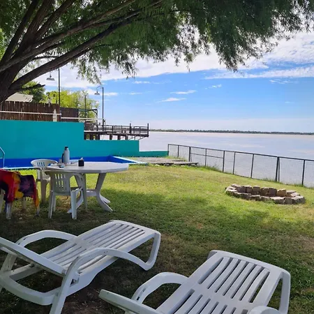Casa Frente Al Rio Parana提供私人游泳池,而到Casino 25 de Mayo开车只需10分钟。 这座别墅还设有露台,美景尽收眼底。